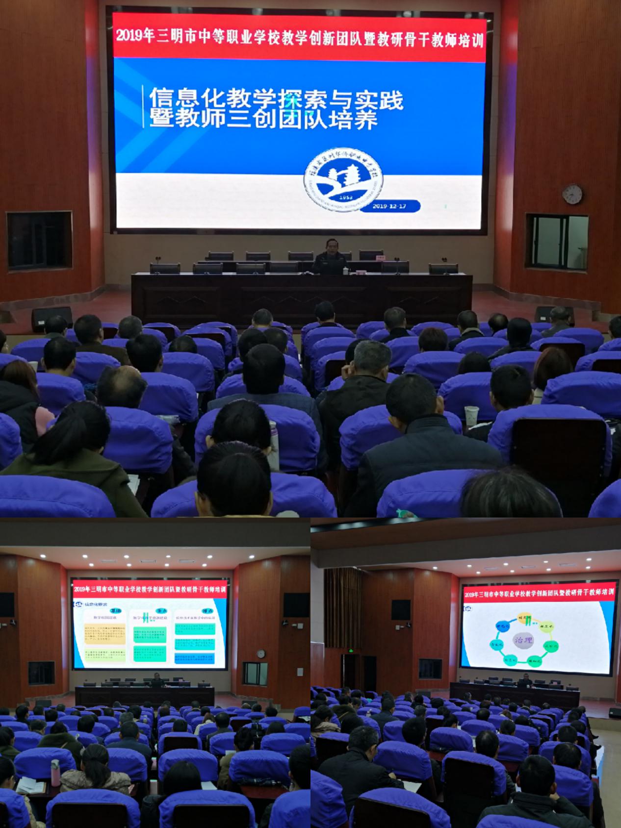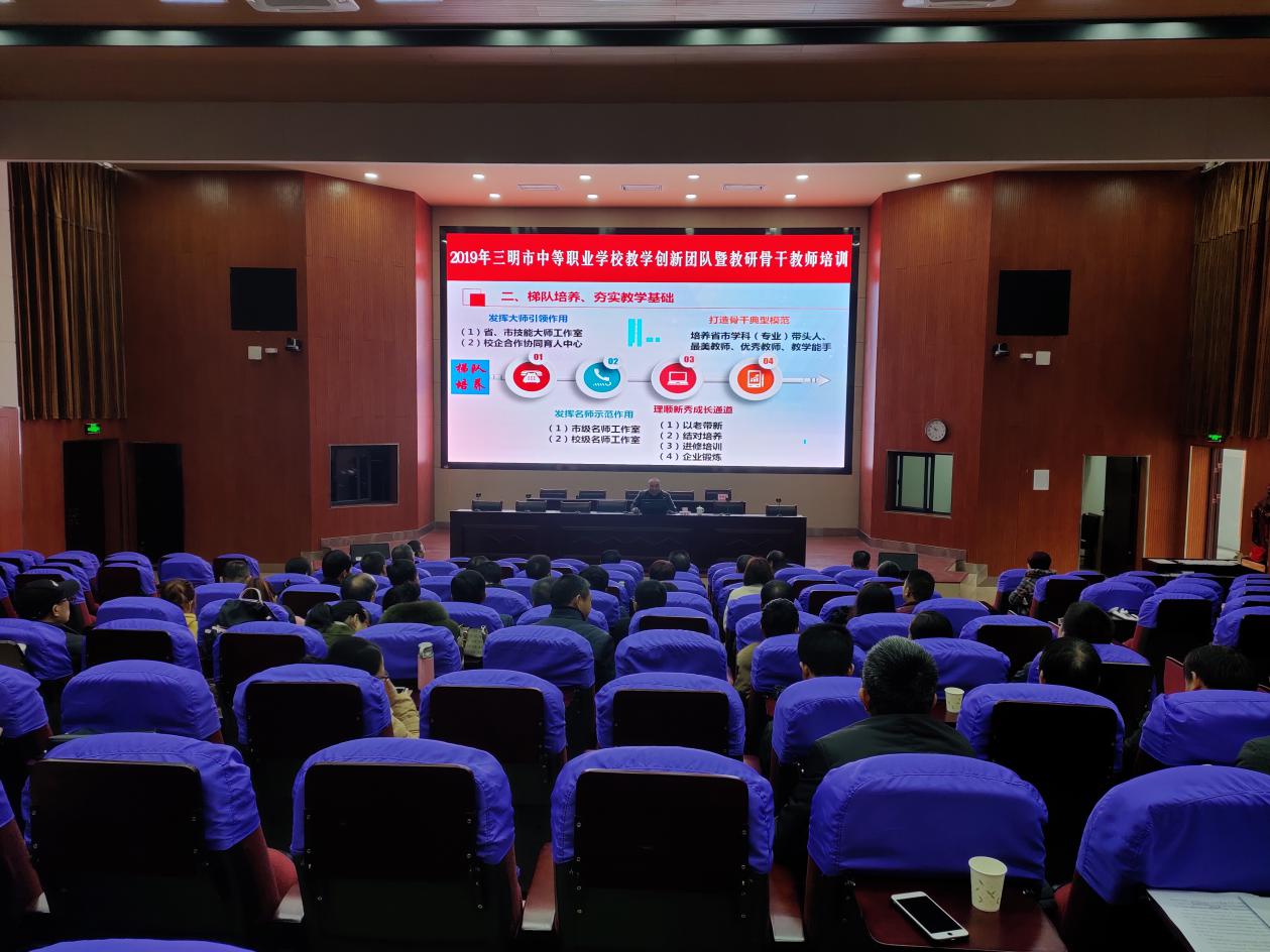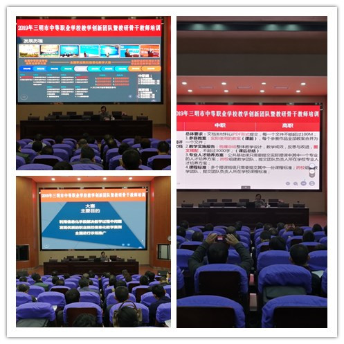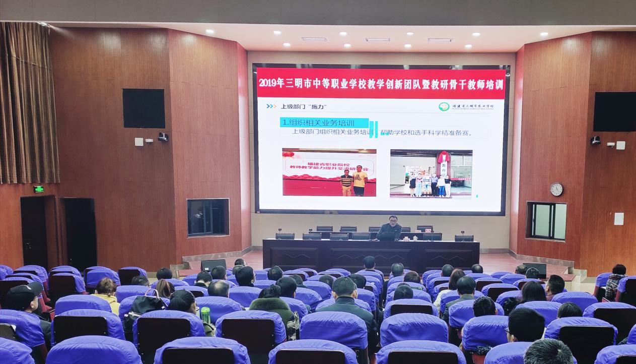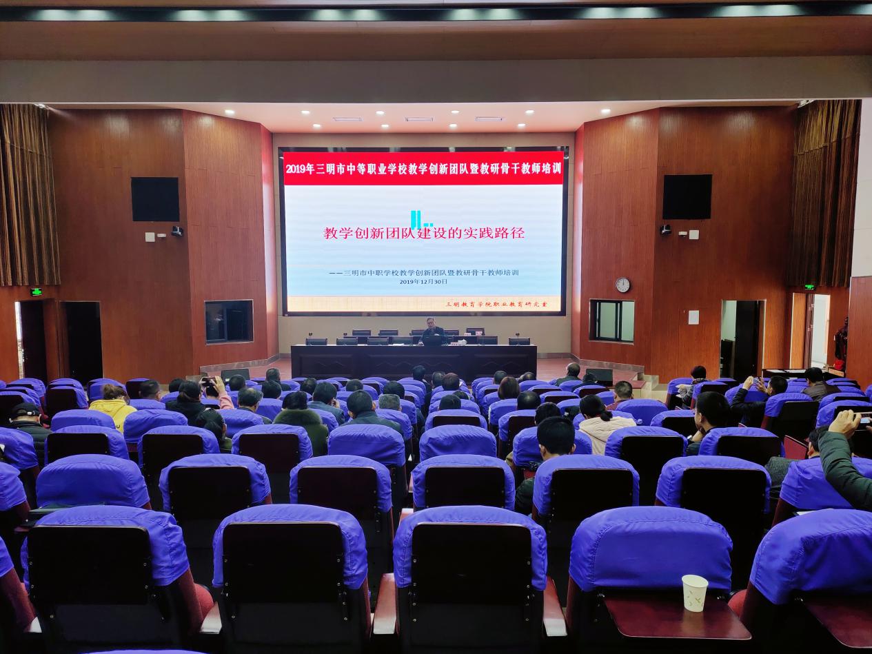 2019年12月30-31日,由三明教育学院主办的2019年三明市中等职业学校教学创新团队暨教研骨干教师培训活动在UED体育(中国)报告厅举行。本次培训面向全市中职校教学分管副校长、教学教研工作负责人和主干专业建设负责人,参训人员达70余人。