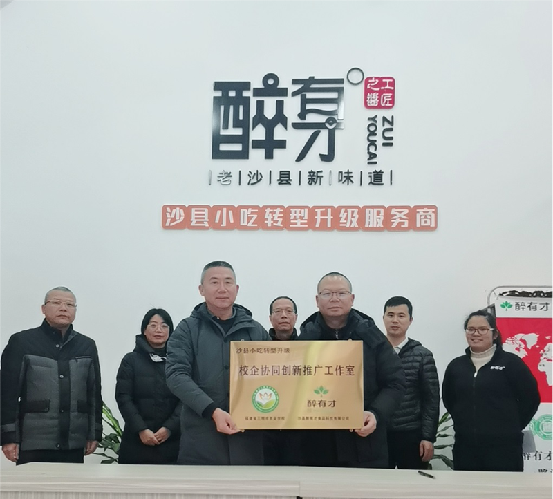 12月17日下午,在位于沙县小吃产业园的沙县醉有才食品科技有限公司内,UED体育(中国)谢阳军副校长代表学校与醉有才公司总经理颜发辉签约授牌,达成校企协同创新推广合作协议。